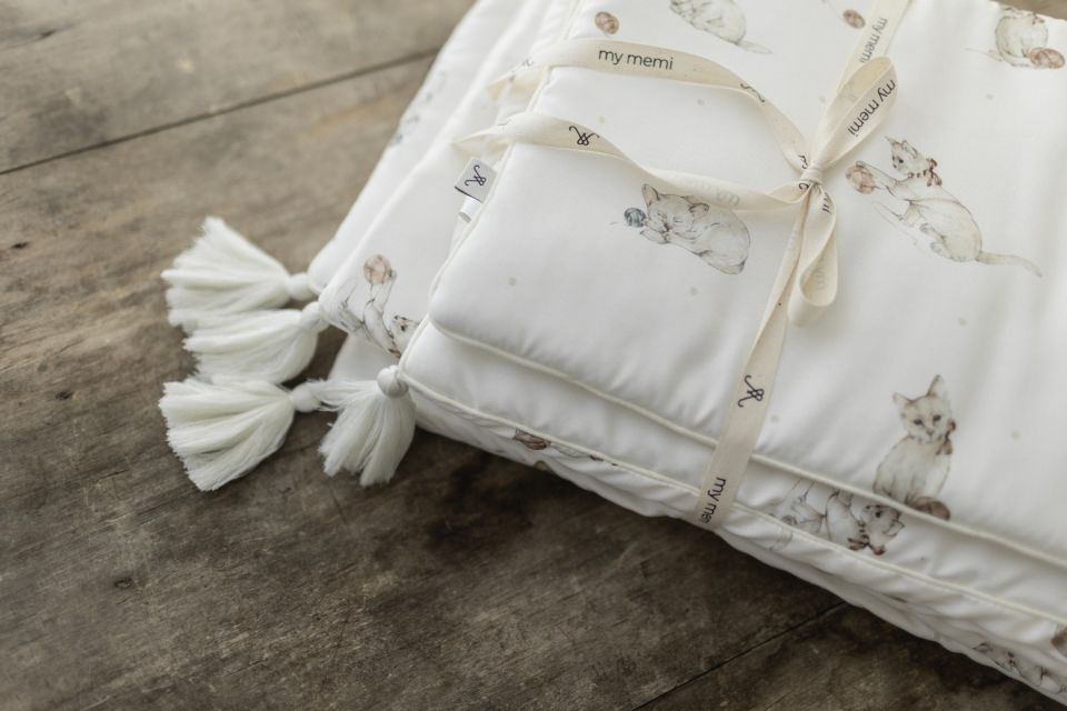 The Kittens collection is a proprietary My Memi design. These motifs were sketched with attention to every detail on paper and then filled with color. The ready graphic pattern was then printed on 100% certified bamboo fabric with paints safe for the youngest children. Expressive drawings perfectly harmonize with subdued colors, creating patterns distinguished by subtlety and lightness. The products were created for parents who want to complete a layette that fits the latest trends, but at the same time is timeless. The Kittens collection fits the unique style of My Memi, so we encourage you to create sets with other products of our brand.