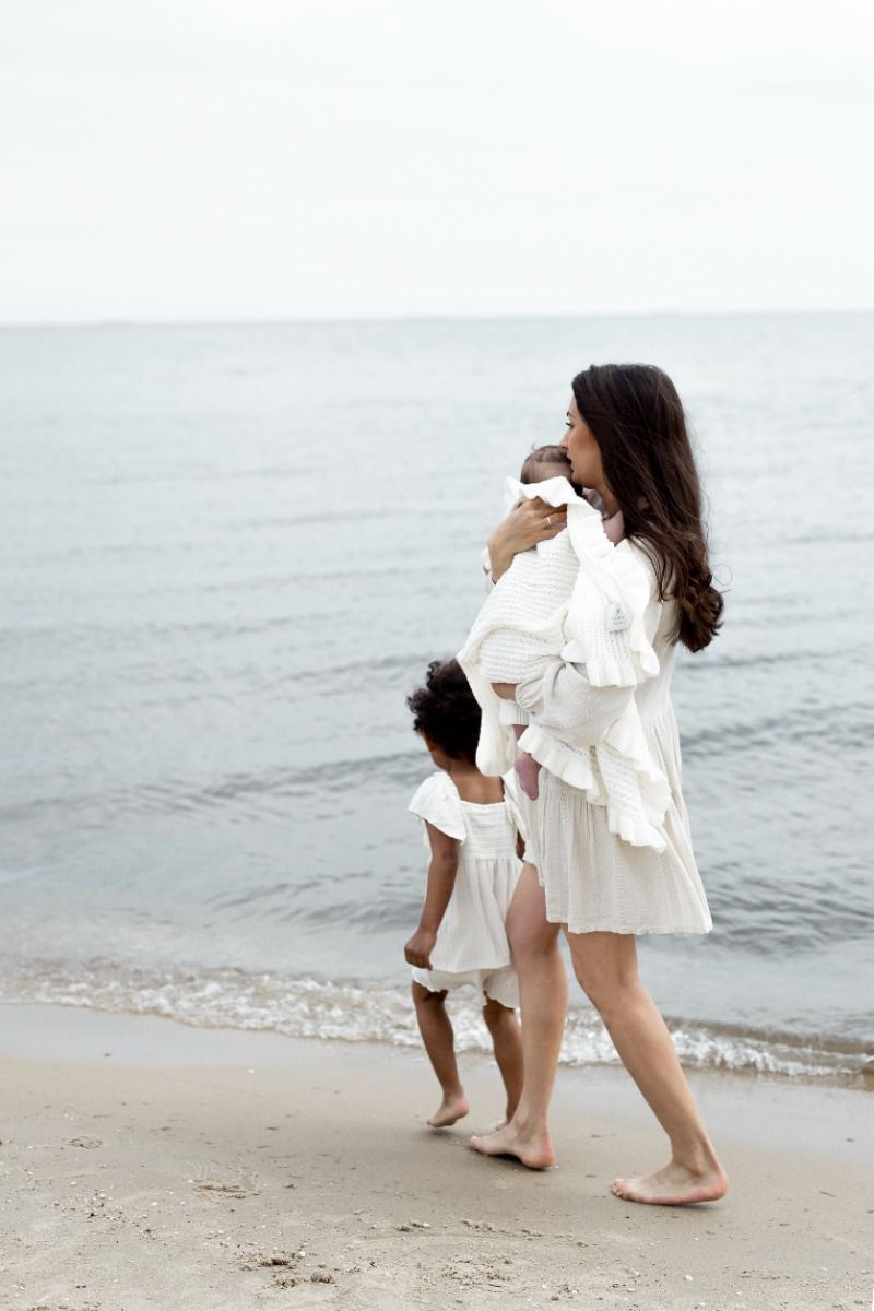 The bamboo blanket created for parents who pay attention to stylish accessories. Elegant weave and frill trim make the blanket stand out from others with its unique look. The blanket is knitted from high quality bamboo yarn with an addition of cotton, which is suitable for sensitive baby's skin from the first day of birth.