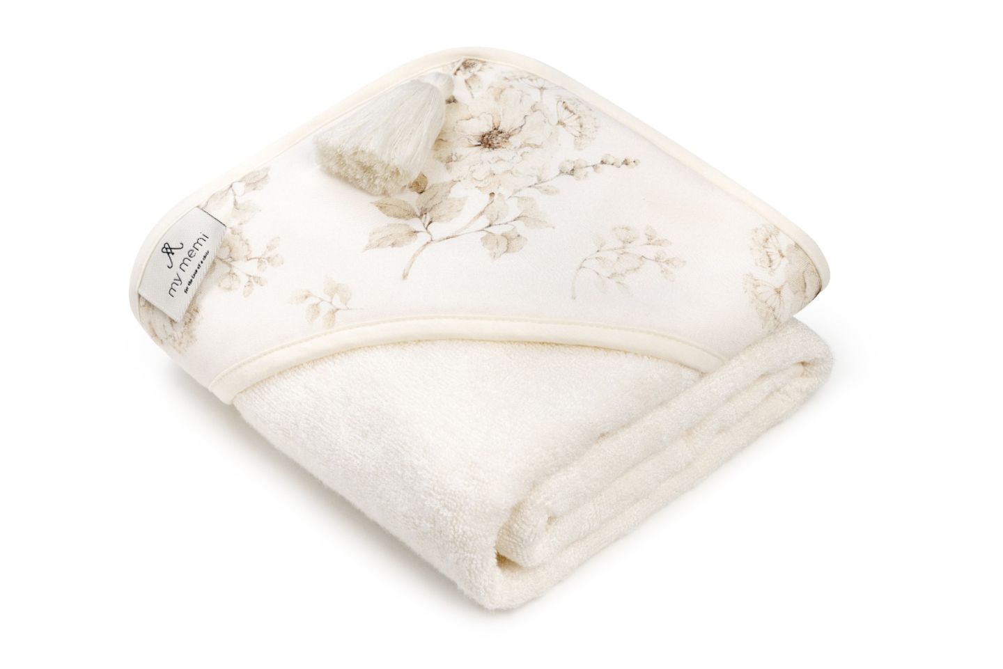 Hooded baby towel with a design from Boho Flowers collection. Product equipped with a suspender that can be easily worn by the parent what makes the daily care much easier. Cuddled immediate after a bath, the baby feels a sense of secure and closeness.