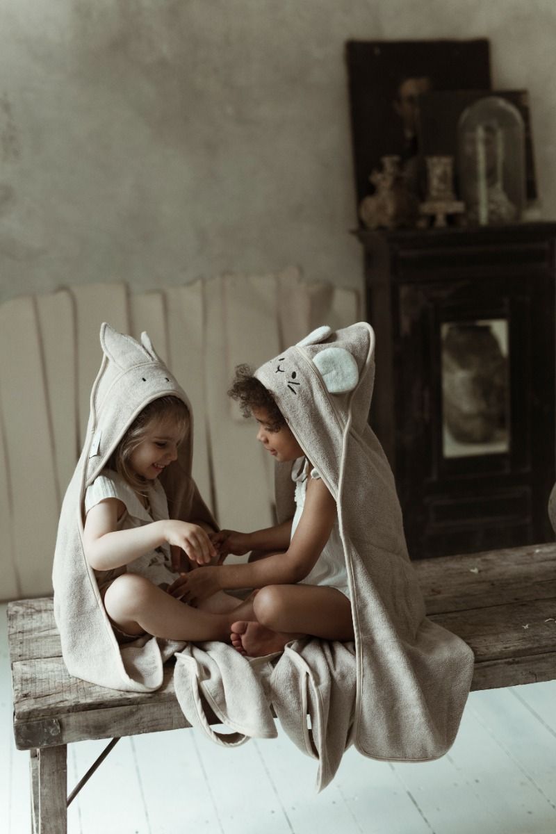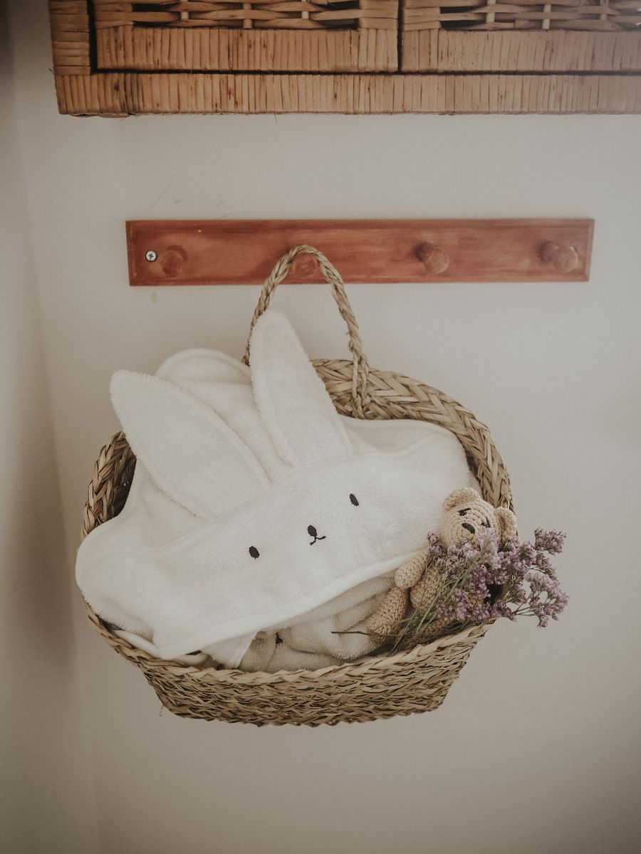 Hooded baby towel designed with a pair of adorable ears. Product equipped with a suspender that can be easily worn by the parent what makes the daily care much easier. Cuddled immediate after a bath, the baby feels a sense of secure and closeness.