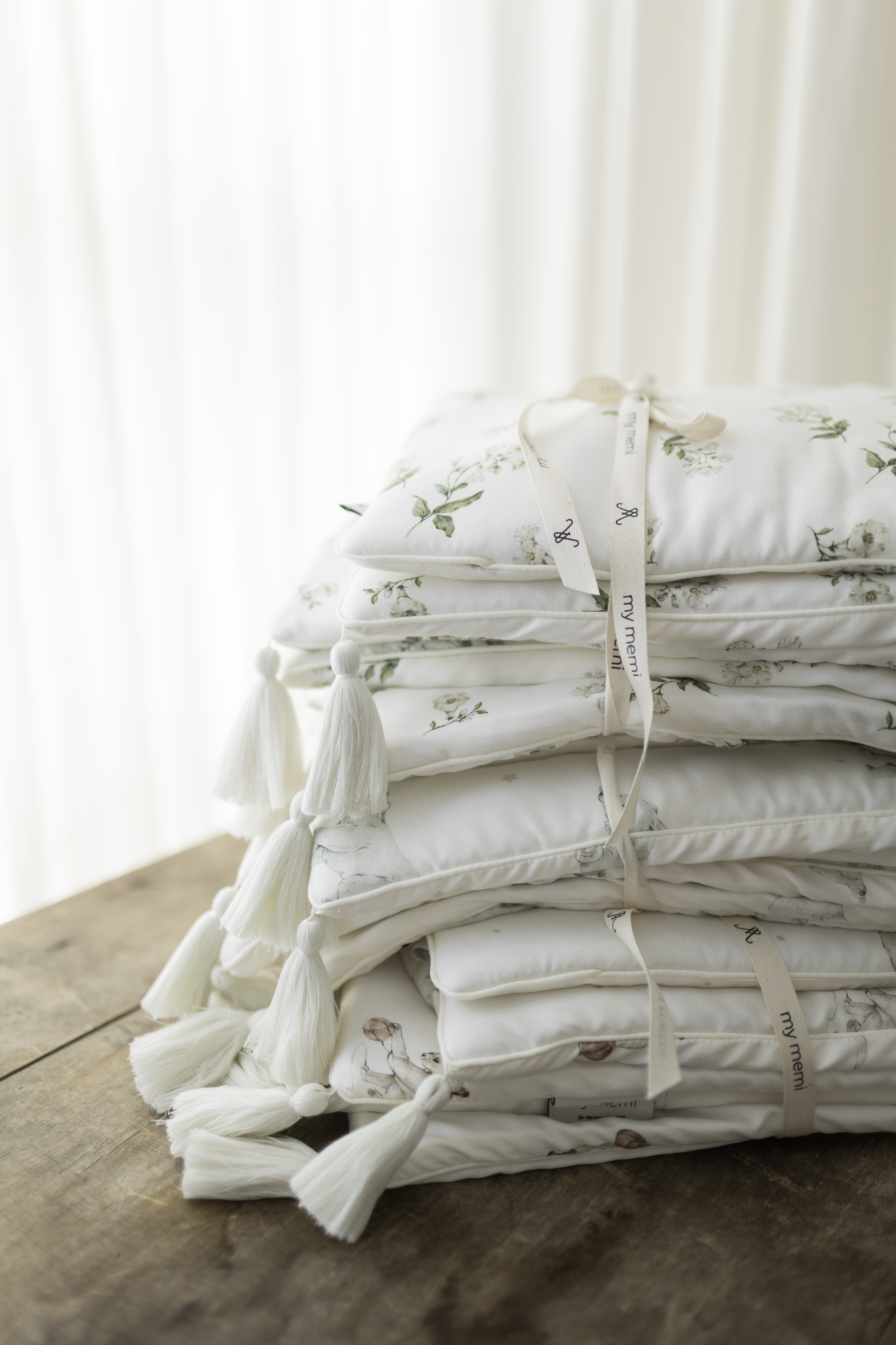Our Boho Flowers, Lions, Little Sheeps, Giraffes, Twigs, Kittens, Little Bears and Bells. collections are made of flat bamboo fabric. It’s 100% bamboo fabric and we use it to produce: horn, bedding, carrycots sheets, pillows, swaddles and towels.