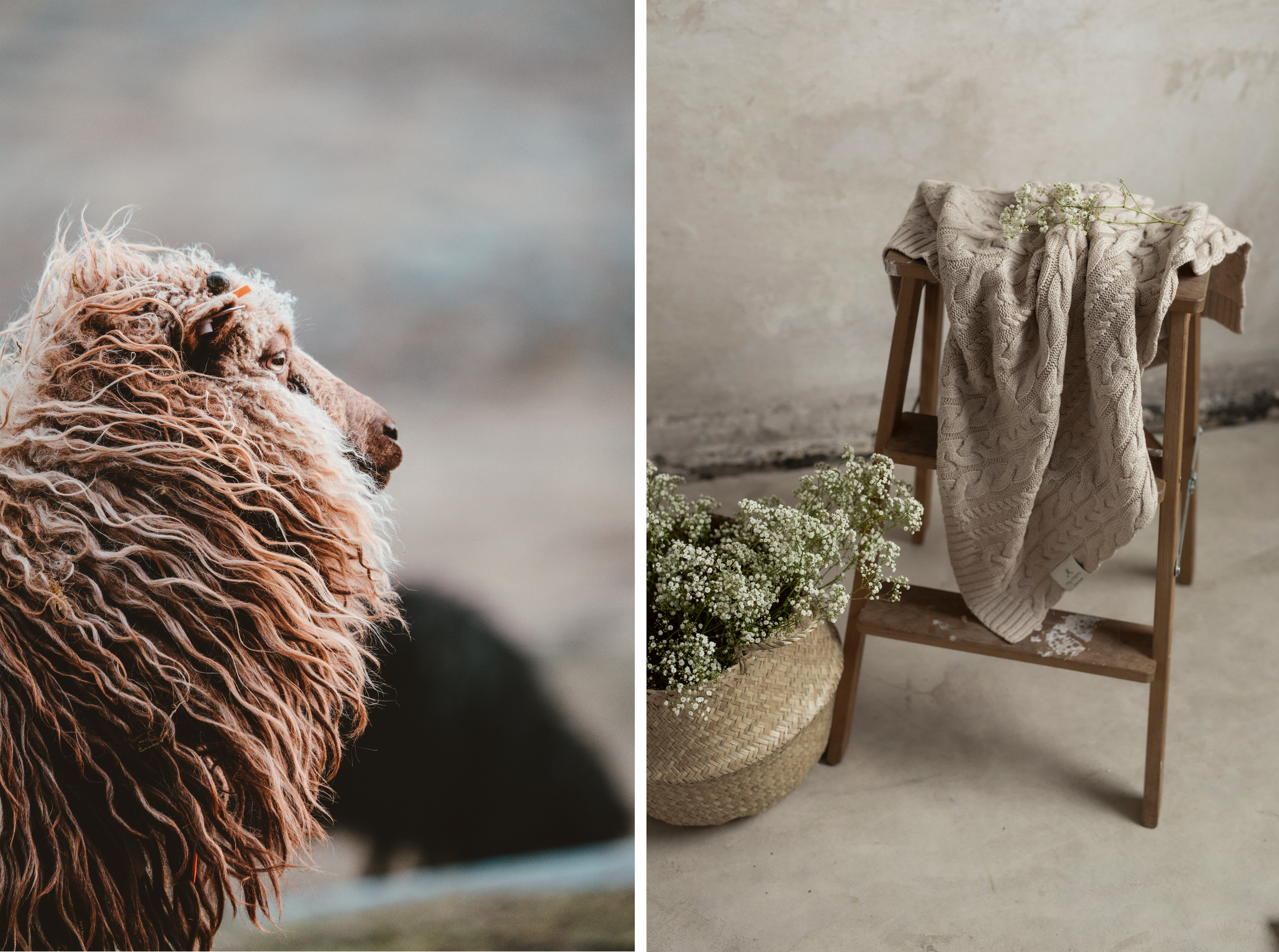 We produce blankets made of merino wool, i.e. wool from merino sheep live in New Zealand mountains. Why this wool? Sheep live in extreme weather conditions, as the temperature varies there from 30 degrees in summer to -20 degrees in winter. And that’s why nature gave merino sheep thermoregulatory wool- it cools down in summer and warms in winter. Each fiber of this wool has air bubbles, which ensure air circulation and very good drainage of moisture from the skin. Merino wool is recommended especially in winter - it will keep you warm, but will prevent excessive sweating. It will also work well in summer, especially on cooler evenings. This material is very soft and pleasant to the touch. Its fibers are fine and springy. Merino wool doesn’t bite the skin, it’s delicate and light. Our offer includes merino wool blankets: classic, braided, Pearl, Floral, in Stripes, swaddle, swaddle Leaves, Warm and Warm Wave. Thanks to the natural origin of this wool, it’s 100% biodegradable.