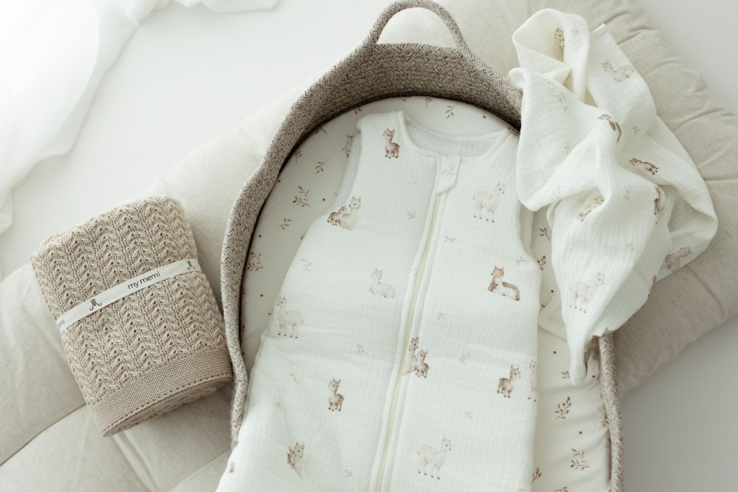 The Alpacas collection is My Memi's original designs. These motifs were sketched with attention to every detail on paper and then filled with color. The ready graphic pattern was then printed on 100% organic cotton muslin with paints safe for the youngest children. Expressive drawings perfectly harmonize with subdued colors, creating patterns distinguished by subtlety and lightness. The products were created for parents who want to complete a layette that fits the latest trends, but at the same time is timeless. The Alpacas collection fits the unique style of My Memi, so we encourage you to create sets with other products of our brand.
