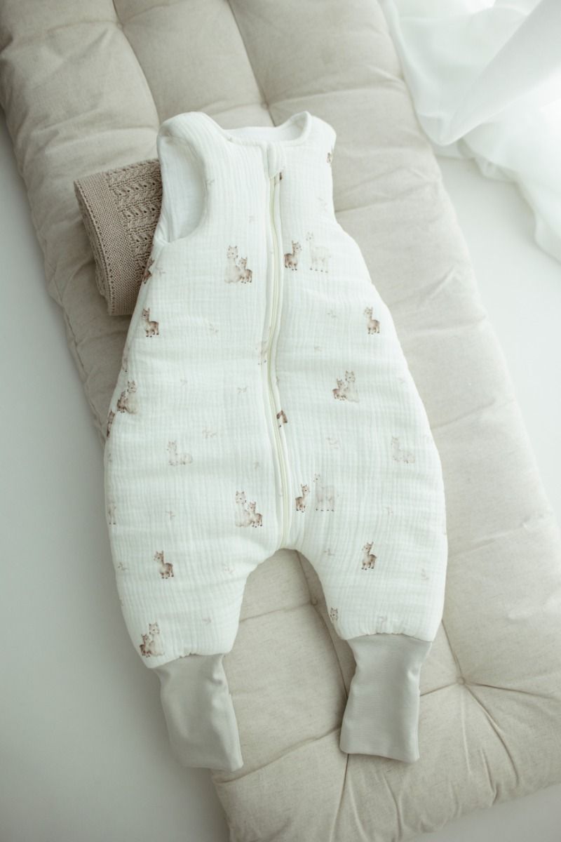 Organic cotton muslin baby sleeping bag with legs 1 - 3 years 2.5 TOG - alpacas