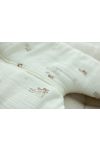 Using a sleeping bag is currently considered the safest form of nighttime covering for infants. The product is made of breathable, airy, and skin-friendly muslin from 100% organic cotton. This makes every night (and morning) more comfortable — both for the baby and for the parents.