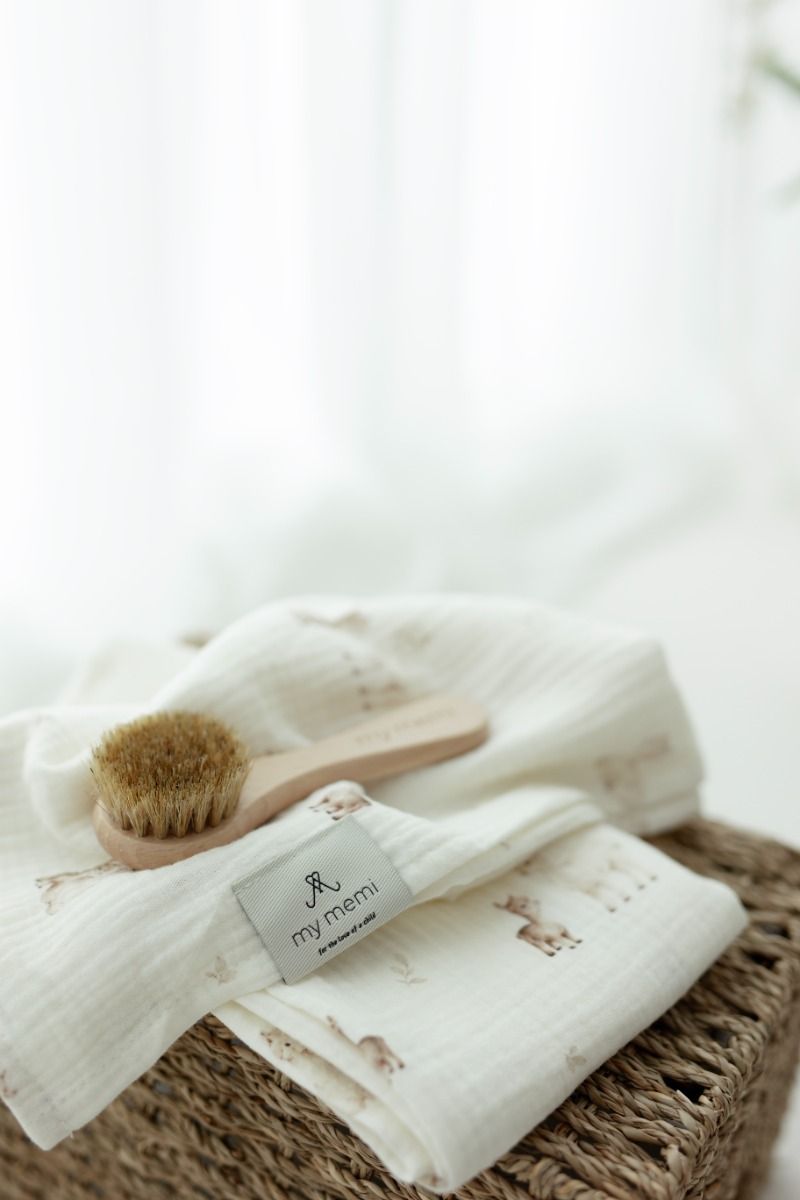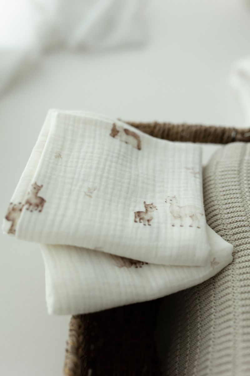 The Alpacas collection is My Memi's original designs. These motifs were sketched with attention to every detail on paper and then filled with color. The ready graphic pattern was then printed on 100% organic cotton muslin with paints safe for the youngest children. Expressive drawings perfectly harmonize with subdued colors, creating patterns distinguished by subtlety and lightness. The products were created for parents who want to complete a layette that fits the latest trends, but at the same time is timeless. The Alpacas collection fits the unique style of My Memi, so we encourage you to create sets with other products of our brand.